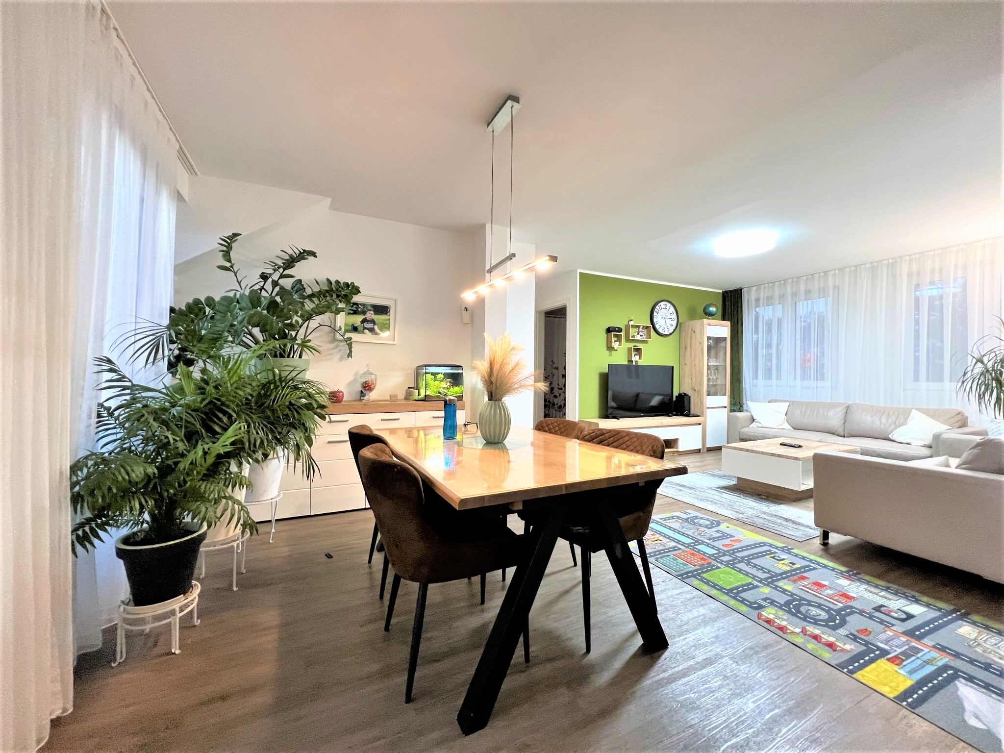 Im Erdgeschoss befinden sich drei Wohnungen, wobei die mittlere Einheit im Jahr 2021 vollständig und hochwertig saniert wurde. Neben einem modernen Badezimmer wurden auch sämtliche Leitungen erneuert. Im Obergeschoss liegen zwei weitere Wohnungen. Sechs der sieben Einheiten verfügen über einen Balkon und bieten somit zusätzlichen Wohnkomfort.