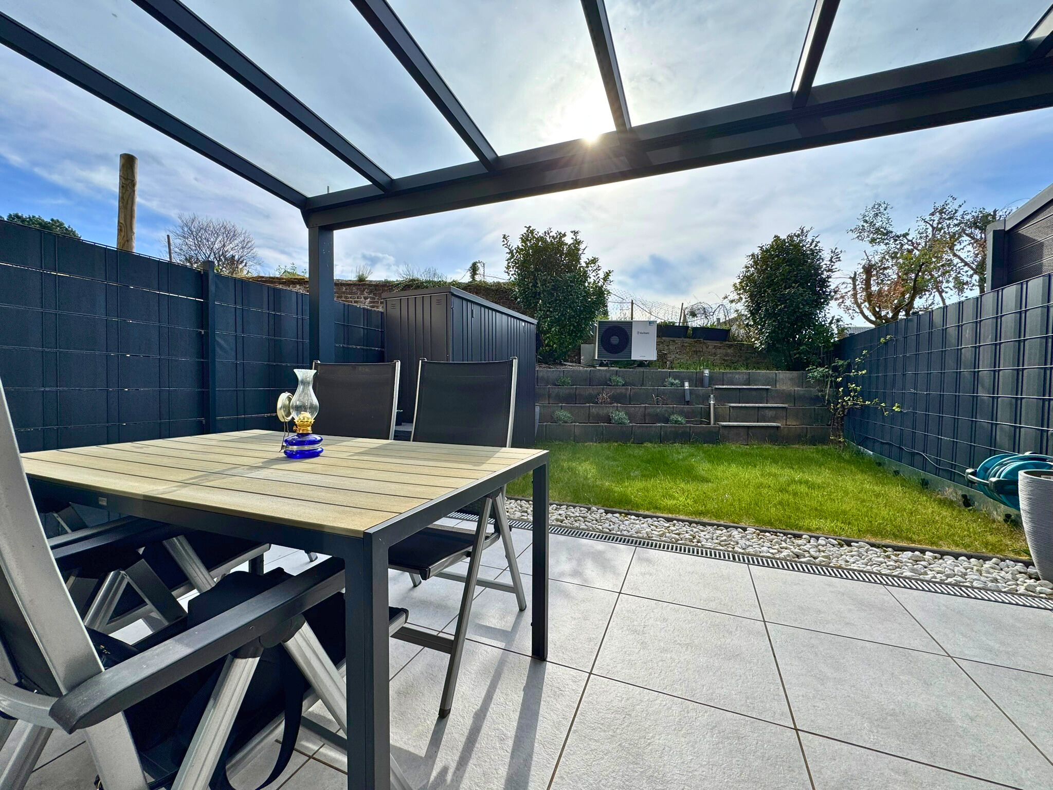 – eine moderne Terrassenüberdachung aus Aluminium mit 8mm Verbund-Sicherheitsglas wurde 2021 von Firma Aylux eingebaut